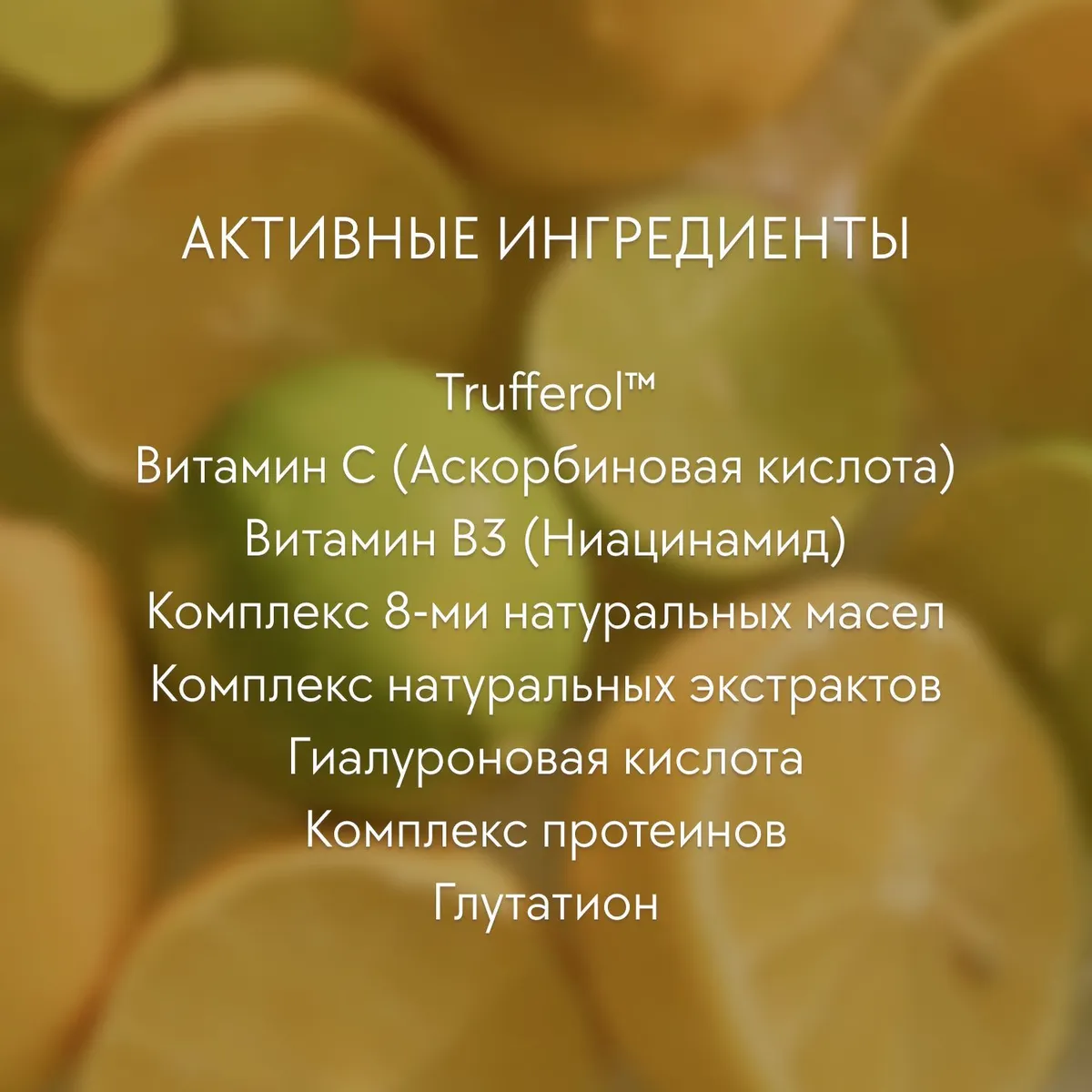 Water, Dipropylene Glycol, Glycereth-26, 1,2-Hexanediol, Niacinamide, Glycerin, Methyl Gluceth-20, Polyglyceryl-10 Laurate, Cetearyl Alcohol, Betaine, Tromethamine, Acrylates/C10-30 Alkyl Acrylate Crosspolymer, Ethylhexylglycerin, Adenosine, Melia Azadirachta Flower Extract (Neem Flower Extract), Ocimum Sanctum Leaf Extract (Holy Basil Leaf Extract), Melia Azadirachta Leaf Extract (Neem Leaf Extract), Sodium Hyaluronate, Panthenol, Hydrolyzed Hyaluronic Acid, Glutathione, Collagen Extract, Butylene Glycol, Curcuma Longa (Turmeric) Root Extract, Corallina Officinalis Extract (Red Coral Extract), Theobroma Cacao (Cocoa) Extract, Dextrin, Saccharomyces Ferment Filtrate, Polyquaternium-51, Coccinia Indica Fruit Extract, Tuber Melanosporum Extract (Black Truffle Extract, 2ppm), Linum Usitatissimum (Linseed) Seed Extract, Nymphaea Alba Flower Extract, Pyrus Malus (Apple) Fruit Extract, Backhousia Citriodora Leaf Oil (Lemon Myrtle Leaf Oil), Hydrolyzed Soy Protein, Hydrolyzed Rice Protein, Hydrolyzed Potato Protein, Hydrolyzed Pea Protein, Hydrolyzed Lupine Protein, Hydrolyzed Oat Protein, Hydrolyzed Corn Protein, Hydrolyzed Wheat Protein, Hydrolyzed Sweet Almond Protein, Hydrolyzed Barley Protein, Centella Asiatica Extract, Persea Gratissima (Avocado) Oil, Olea Europaea (Olive) Fruit Oil, Oenothera Biennis (Evening Primrose) Oil, Macadamia Integrifolia Seed Oil, Hydrolyzed Vegetable Protein, Hydrolyzed Jojoba Protein, Hippophae Rhamnoides (Sea Buckthorn) Fruit Oil, Helianthus Annuus (Sunflower) Seed Oil, Glycoprotein, Glycine Soja (Soybean) Oil, Ceramide NP, Camellia Japonica Seed Oil, Ascorbic Acid, Mannose, Glucuronic Acid, Glucose, Tocopherol (Vitamin E), Fragrance, Limonene, Hexyl Cinnamal, Linalool.